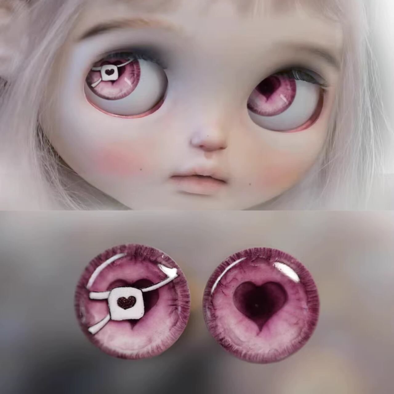 【受注製作】【ブライス用アイチップ】ドールアイ Blythe カスタムアイ ネオブライス ストーン入り 磁石タイプ変更可能 手彫り眼紋 キラキラ瞳 UVレジン 手作り オリジナル ハンドメイド 鬼の目さん 受伤的心